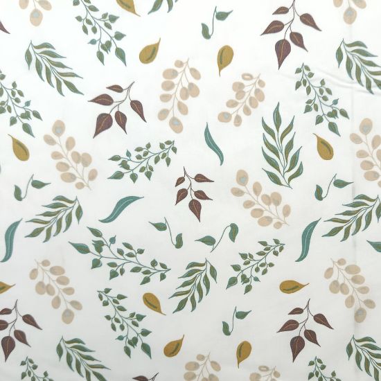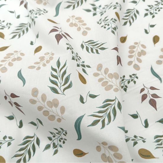 Leicht fallender Baumwollstoff in offwhite mit verschiedenen Blättern gemustert