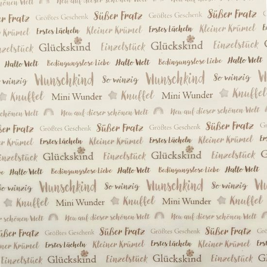 Weicher French Terry in ecru mit Herzensworten gemustert