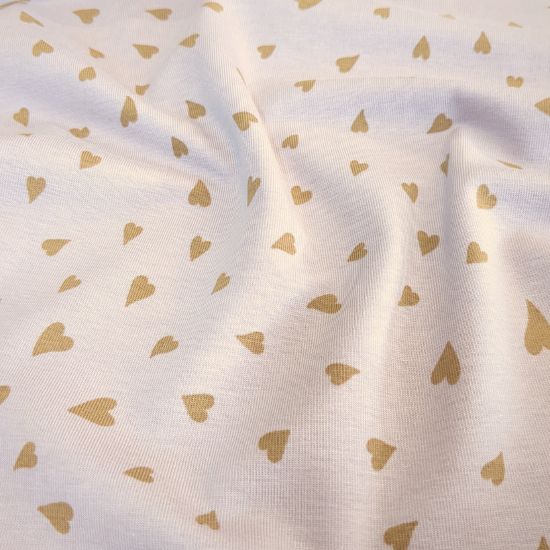 Weicher Baumwolljersey in altrosa mit geschwungenen Herzen gemustert. Aus Jersey lassen sich viele tolle Kleidungsstücke für Groß und Klein fertigen, von Kleidern, Shirts und Leggings über Babybodies, Loops und Mützen.