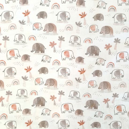 Weicher Musselin in offwhite mit süßen Baby Elefanten gemustert.