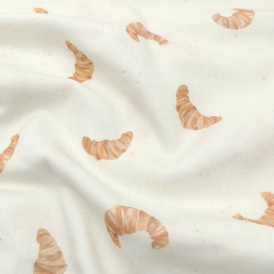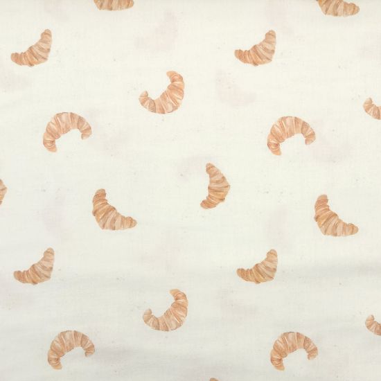 Weicher Musselin in ecru mit süßen Croissants gemustert.