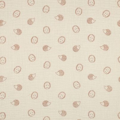 Weicher fallender Musselin in ecru mit niedlichen Igeln gemustert.