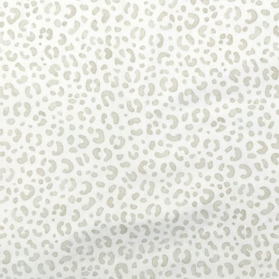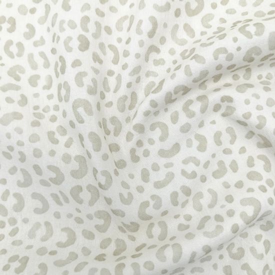Weicher Musselin in ecru mit süßem Mini Leoprint in salbei gemustert.