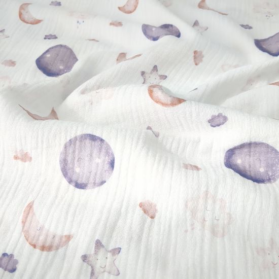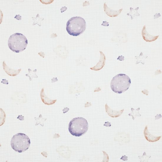 Sommerlich leichter Musselin in Offwhite mit niedlichem Traumhimmel gemustert.