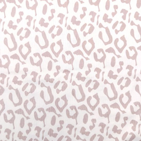 Weicher Ribjersey in ecru mit Leoprint in dunklem altrosa gemustert. Ein toller Ribjersey für Groß und Klein. Ideal für Babykleidung, Kinder-, und Damenshirts.