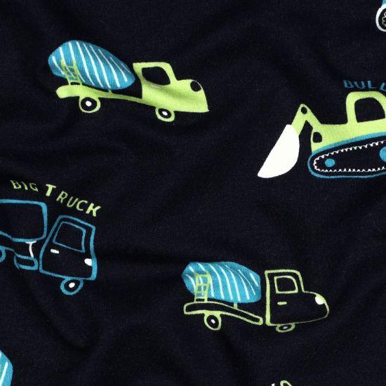 Weicher ganz softer warmer Sweatstoff in marine mit Baufahrzeugen gemustert. Daraus lassen sich viele tolle Kleidungsstücke für Groß und Klein fertigen, von Kleidern, Pullis, Hoodies