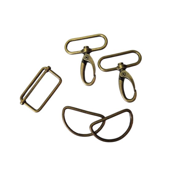 Komplettset für Taschen, bestehend aus 2 Karabinern, 2 D-Ringen und einem Gurtbandschieber. Passend für Gurtband in 4cm Breite. mit diesem schönen Koplettset bist du auf jeden Fall für deine neue Tasche gerüstet.