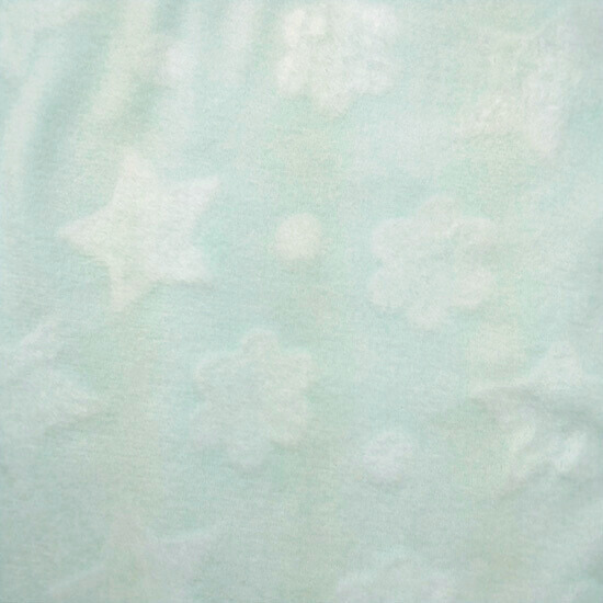 Wellnessfleece in Pastellgrün mit Sternenmuster und Wölkchen, ideal für Decken und Kuschelkissen, aber auch für Babyjäckchen. Kuschelfaktor: sehr hoch!