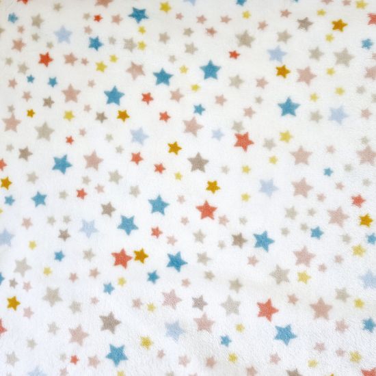Kuscheliger Wellnessfleece mit bunten Sternchen. Ideal für Pullover, Jacken, Mützen, Schals, Decken und Kuschelkissen, Hundekörbchen uvm. Kuschelfaktor: sehr hoch!