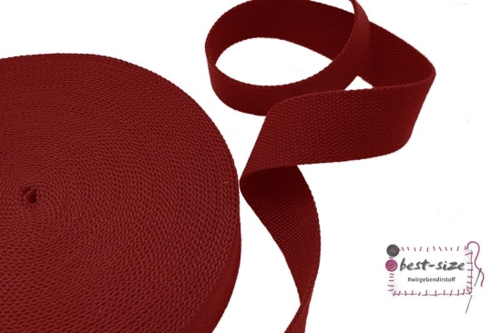 Baumwollgurtband in bordeauxrot mit einer Breite von ca. 40mm, ideal geeignet für Taschen, Gürtel, Hundeleinen und vieles mehr...