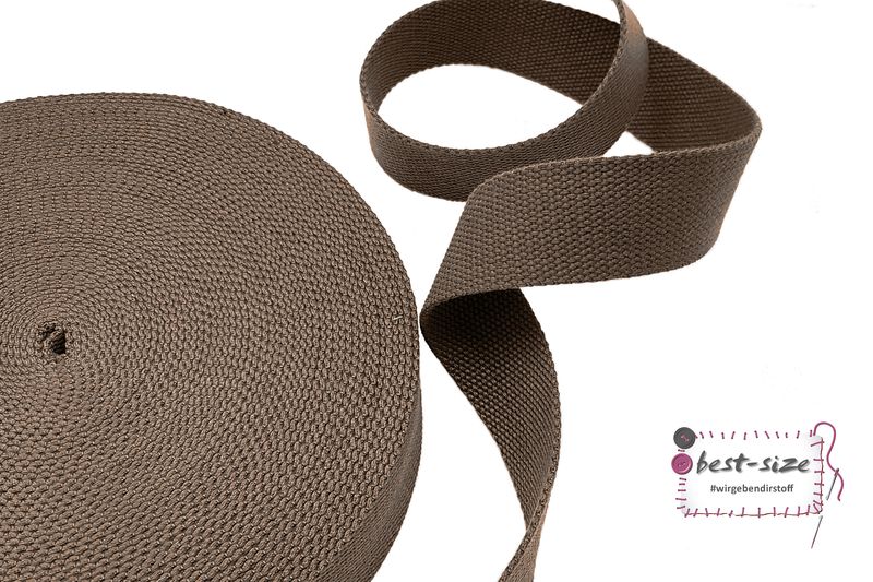 Baumwollgurtband in dunklen sandfarben mit einer Breite von ca. 40mm, ideal geeignet für Taschen, Gürtel, Hundeleinen und vieles mehr...