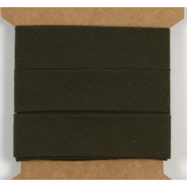 Baumwollschrägband mit einer Breite von 20mm in khaki gemustert. Dieses Schrägband ist ideal geeignet zum Einfassen von offenen Kanten von Baumwollstoffen für einen sauberen Übergang.