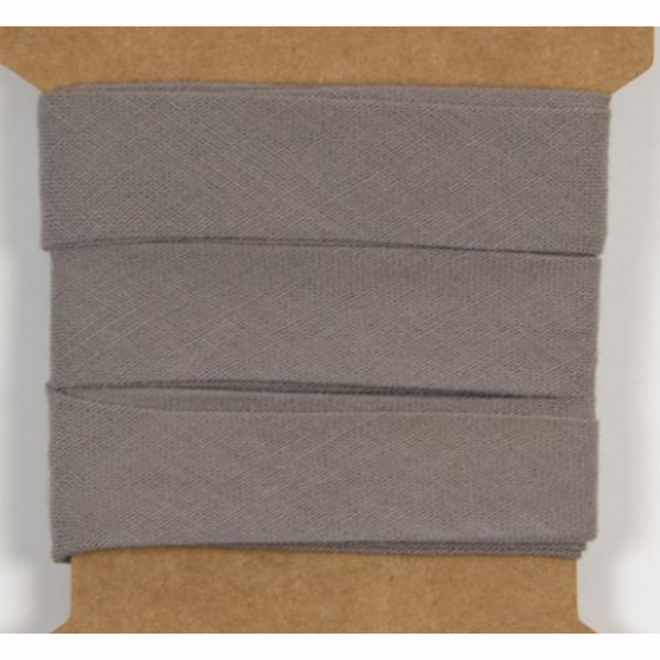 Baumwollschrägband mit einer Breite von 20mm in mittelgrau gemustert. Dieses Schrägband ist ideal geeignet zum Einfassen von offenen Kanten von Baumwollstoffen für einen sauberen Übergang.