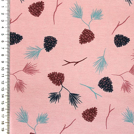Toller Dekostoff aus Baumwollgemisch in altrosa mit bunten Tannenzapfen, Aesten und Nadeln gemustert, der sich super für Dekorationsartikel, Taschen, Kissen, Tagesdecken uvm. eignet. :)