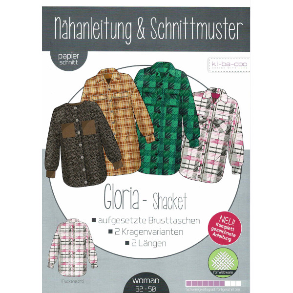 Die locker geschnittene Hemdjacke Gloria ist ein treuer Begleiter im Herbst und Frühjahr. Der Schnitt ist klassisch im Hemdenstil geschnitten. Du kannst die Gloria klassisch mit Kragen nähen. Sie macht aber auch ohne Kragen, nur mit Rundhalsausschnitt eine gute Figur.