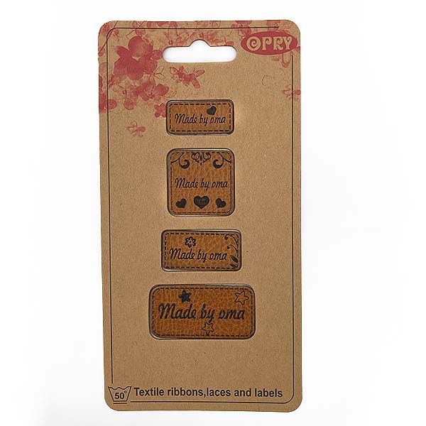 Label aus Kunstleder  mit eingraviertem Schriftzug