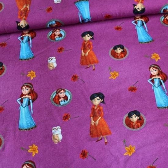 Weicher, leichter und elastischer Stoff in lila gemustert mit Motiven von Robin Hood und seinen Freunden, der sich super eignet für dünne Kleidung, Mützen, Schals und vieles mehr. Lasst Euren Ideen freien Lauf...