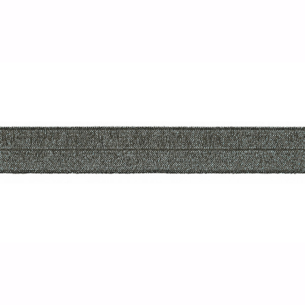 Schrägband mit verwebten Lurexgarn in anthrazit gemustert. Dieses Schrägband ist ideal zum Einfassen von offenen Kanten von verschiedenen Stoffarten für einen sauberen Übergang.