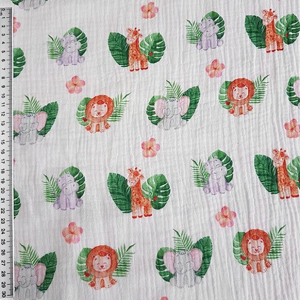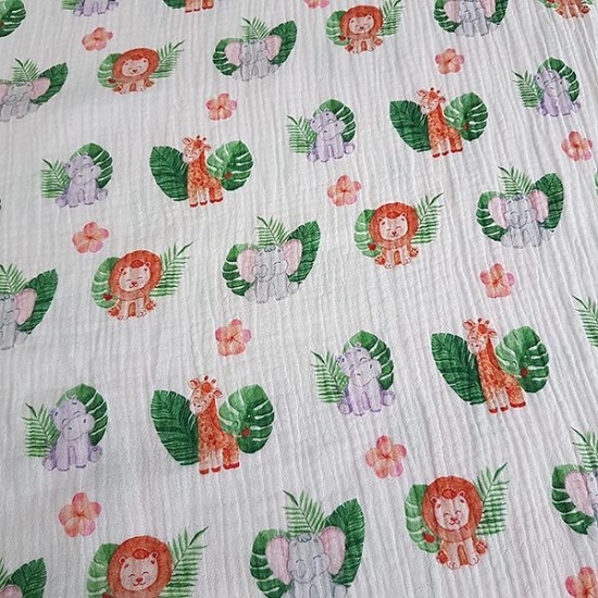 Toller Musselin mit süßen Zootieren gemustert. Auch wenn dieser Musselin auch herkömmlich als Spucktuch eine tolle figur macht, kann er hervorragend zu Kinderkleidung vernäht werden. Musselin ist der perfekte Sommerstoff und fühlt sich toll auf der Haut an.