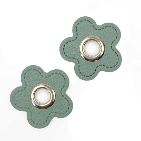 Ösen Patches aus Kunstleder als Blume in Mint