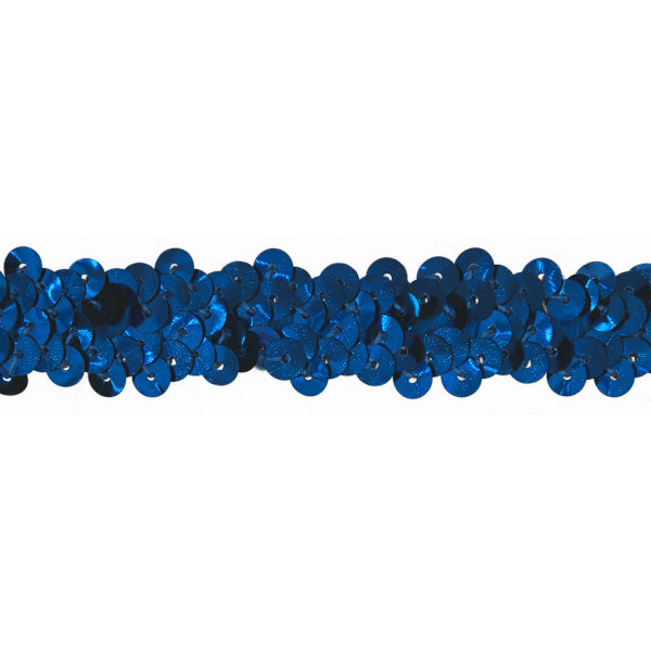 Tolles Pailettenband mit einer Breite von 20mm oder 30mm in royalblau. Diese Band ist ideal geeignet zum Aufnähen und Applizieren von Taschen, Hosen oder Röcken sowie für Tanz- und Kanervalskostüme.