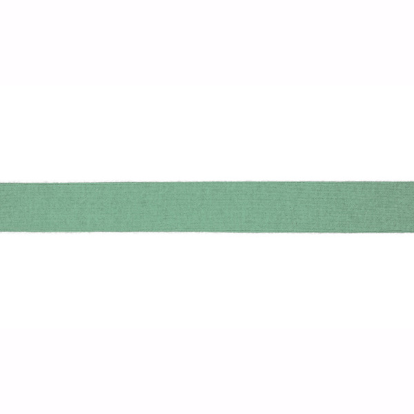 Elastisches Viskoseschrägband in jadegrün gemustert. Dieses Schrägband ist ideal zum Einfassen von offenen Kanten von leichten Damen- und Viskosestoffen für einen sauberen Übergang.