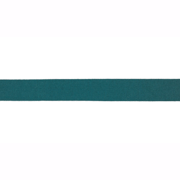 Elastisches Viskoseschrägband in petrol gemustert. Dieses Schrägband ist ideal zum Einfassen von offenen Kanten von leichten Damen- und Viskosestoffen für einen sauberen Übergang.