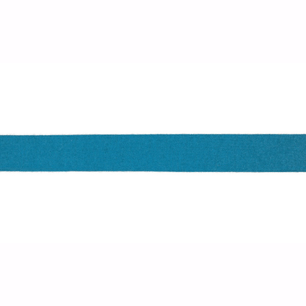 Elastisches Viskoseschrägband in türkis gemustert. Dieses Schrägband ist ideal zum Einfassen von offenen Kanten von leichten Damen- und Viskosestoffen für einen sauberen Übergang.